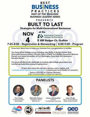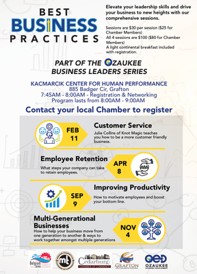 Ozaukee Economic Development, in partnership with the Belgium Area Chamber of Commerce, Cedarburg Chamber of Commerce, Grafton Area Chamber of Commerce, and Mequon-Thiensville Chamber of Commerce are proud to co-host "Mastering Marketing in Ozaukee County," part of the 2025 Best Business Practices series.